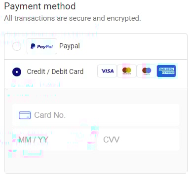 If you want to checkout with a Debit or Credit Card, just enter your * Card No, * Expiration Date, and * CVV.